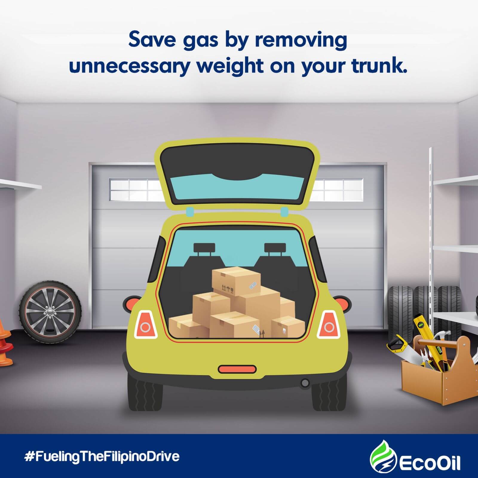 Unneeded additional loads on your trunk can trigger higher gas consumption. When not in use, remove transport racks and boxes. Emptying your trunk of things that are not needed on your trip gives higher likelihood of saving gas.